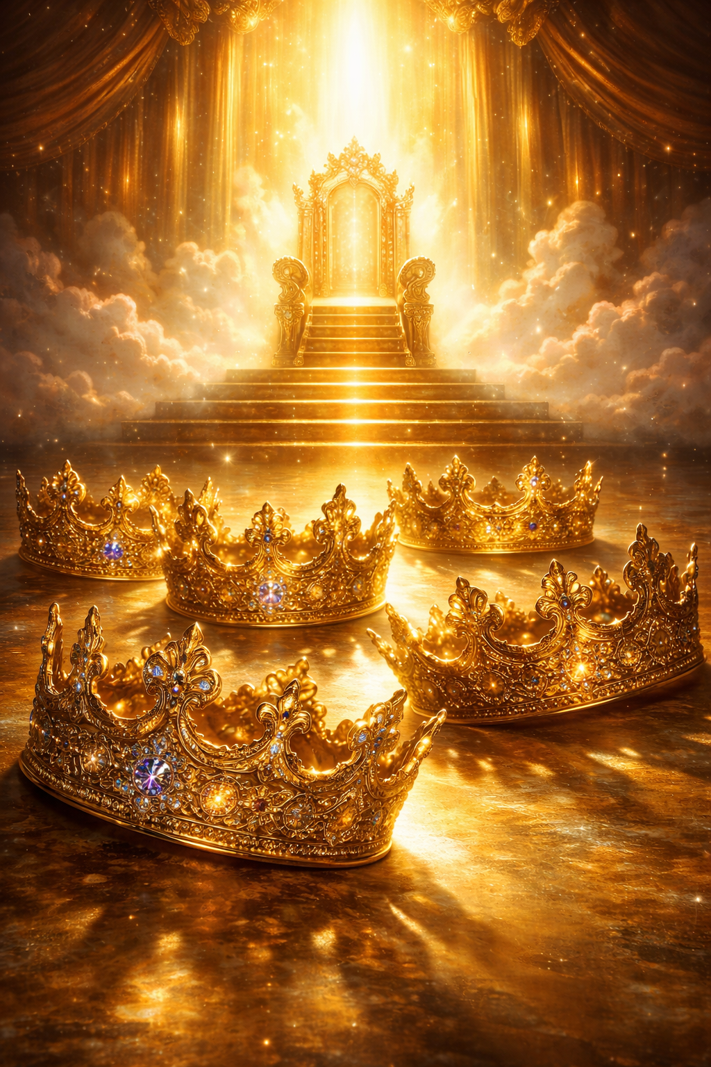 Opb. 4:10-11 Zo vielen de vier en twintig ouderlingen voor Hem, Die op den troon zat, en aanbaden Hem, Die leeft in alle eeuwigheid, en wierpen hun kronen voor den troon, zeggende: Gij Heere, zijt waardig te ontvangen de heerlijkheid, en de eer, en de kracht; want Gij hebt alle dingen geschapen, en door Uw wil zijn zij, en zijn zij geschapen.